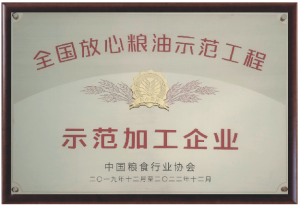 • 全國放心糧油示范加工企業(yè)
